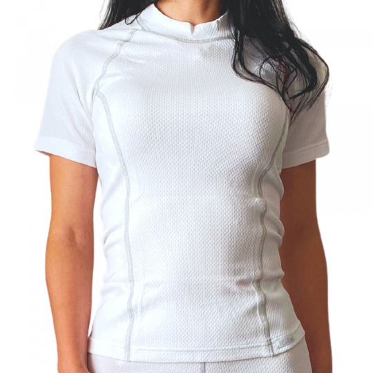 Анатомично проектираната и прилепнала риза ще поддържа тялото ви в топлинен комфорт. кройката е максимално съобразена с извивките на тялото, като запазва добре формата и силуета. Той е изработен от плетен фин полипропилен, съдържащ сребърни наночастици. Определеният метод на плетене дава функционални свойства.Тя отвежда потта, осигурявайки оптимален топлинен комфорт по време на спорт, работа и почивка, но също така и удобно пътуване и усещане за чистота за дълго време.